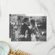 Apresentando a Noiva Elegante e o Cartões de agradecimentos de Casamento de Groom, uma forma eterno de expressar sua sincera gratidão. Esta design de dois lados mostra lindamente seus momentos de casamento favoritos, com uma foto impressionante na frente adorada com um guião branco delicado que diz "Obrigado." Ao contrário, você pode personalizá-la com uma segunda foto apreciada e uma mensagem personalizada para seus entes queridos, fazer cada carta com uma marca especial. Perfeito por capturar a alegria e o amor do seu grande dia, este cartão é uma forma graciosa e pessoal de compartilhar sua apreciação com a família e os amigos.