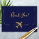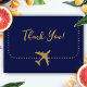 Cartão De Agradecimento Casamento de Passagem de Embarque Azul e Dourado