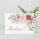Cartões de agradecimentos elegante de casamento com belos arranjos florais de aquarela, com rosas de hortas de peônias cor-de-rosa e vermelho-burgundy, com folhas verdes e folhagem, e um roteiro de caligrafia chic com letras de tendências. +++++++++ Personalize-o com o seu texto e assinatura personalizados no verso! ++++++++++ Adequado para primavera, verão ou outono para casamentos ao ar livre, obrigado cartas.