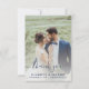 Cartões de agradecimentos moderno de casamento com uma foto vertical personalizada na frente e uma foto horizontal no verso. As palavras "Obrigado" aparecem em um roteiro de escrita manual azul marinho com traços decorativos no início e no fim. Adicione seus nomes e a data e local do casamento abaixo na fonte sans serif. Personalize o lado inverso com uma mensagem de sua escolha em sans serif branco em um fundo azul marinho e adicione sua linha de assinatura em letra decorativa de letra de letra de letra. Substitua facilmente as imagens de amostra pelas suas próprias fotos de casamento. Uma tela de gradiente branco ajuda a garantir o texto na parte frontal das pop da placa.