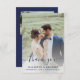 Cartão De Agradecimento Casamento de Script Azul com Marinho de 2 Fotograf