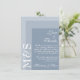 Simples suíte moderna de cartões de agradecimentos de casamentos para noivas que estão adorando suas cerimônias em azul empoeirado. A suíte de casamento chic tem uma fonte branca moderna com iniciais no lado.