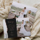 Mande a sua família e amigos um obrigado especial de casamento com esses cartões com fotos personalizados. À esquerda, as palavras "obrigado você" aparecem em uma elegante tipografia de escrita manual de cor rosa em um fundo preto de slate sobre uma breve e editável mensagem de obrigados aos convidados de casamento em letra copperplate, com seus nomes abaixo. Uma cinza e uma aquarela branca agitam a borda aparada com uma brilhante rosa de ouro falso enfeite a borda esquerda. O verso fornece espaço para uma segunda foto horizontal.