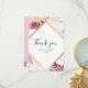 Cartões de agradecimentos floral elegante com flores rosas rosas pinceladas, cor-de-rosa, com um quadro geométrico de efeito ouro. A partir da coleção "Modern Floral and Geométrico", este esquisito e sofisticado layout mostra seu obrigado detalhado em um roteiro de na moda e tipografia moderna com um buquê rico sobre fundo branco. Dizer obrigados a todos que chegaram à cerimônia deixará uma memória duradoura