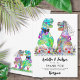 Um casamento engraçado sobre o tema dos dinossauros Obrigado aos seus convidados por serem redondos com esta divertida e colorida noiva e cartões de agradecimentos de casamento de dino T-Rex. Tiro Tiranosurus Rex noiva e noivo num prado romântico de flores silvestres e tipografia quimética moderna com modelos fáceis de usar. Dino pré-histórico original e trabalho de arte floral de verão da artista Catherine Sweetman