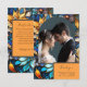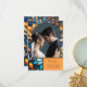 Mostre sua gratidão com este elegante obrigado de casamento floral azul e dourado que você faz cartão com fotos. Apresentando intrincados designs florais com inspiração em vidro em tons vibrantes de azul, ouro e laranja, este cartão adiciona um toque sofisticado e romântico ao seu obrigado de casamento postado que você envia mensagens. O belo design de arco enquadra a sua foto favorita, criando uma manutenção personalizada e luxuosa para os seus convidados. Personalizável para corresponder ao seu tema de casamento, este cartão é uma forma perfeita de expressar suas obrigados. O design é feito com conteúdo generativo.