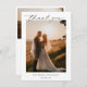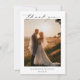 Cartões de agradecimentos de casamento clássico e plano com um design preto e branco simples e mínimo com uma combinação de fontes serif tradicionais e um roteiro elegante juntamente com sua data em um formato grande para um toque moderno junto com sua foto favorita. O verso tem sua mensagem personalizada e uma segunda foto para um total de duas fotos. Este cartões de agradecimentos elegante é excelente para um casamento formal.