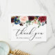 Casamento de Caligrafia Delicada Moderna, Belo Elegante, Obrigado Cartão Plano - Flor Azul Burgundy Floral com Rosas e Verde