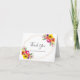 Este belo e elegante design apresenta buquês florais brilhantes com flores em tons de coral, laranja, rosa, vermelha, amarela e roxa, juntamente com uma trendy estrutura geométrica de cobre. Dentro o quadro é o texto personalizável para seu evento especial na tipografia popular. O dentro da placa apresenta um fundo de coral chic na metade superior e um obrigado impresso personalizável que você envia mensagens e assinaturas na metade inferior. Você pode personalizar este item alterando o texto na modelo.