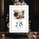 Cartões de agradecimentos de casamento floral preto e dourado com tipografia elegante personalizável para suas especificidades de evento.
