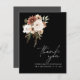 Cartões de agradecimentos de Casamento Floral e Negro Russo. Convide seus convidados para o dia do seu casamento com um cartões de agradecimentos de casamento elegantemente projetado com uma bela mistura de pêssego e flores verdes de azeitona em um fundo preto brilhante. Este cartões de agradecimentos de casamento tem um belo design floral e botânico, com vibrações rústicas e boho, perfeito para o seu casamento floral ou gótico. A disposição mínima e moderna chama a atenção para o pêssego, elegante arranjo floral que se fixa sobre um fundo negro impressionante. Este cartões de agradecimentos de casamento vai dar o tom para um belo cenário de casamento rodeado de decoração estética escura e flores silvestres de pêssego e creme. Uma adição perfeita a qualquer celebração bótica botânica ou negra.
