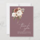 Roxo Rústico com Cartões de agradecimentos de Casamento de Flores de Pêssego. Convide seus convidados para o dia do seu casamento com um cartões de agradecimentos de casamento elegantemente projetado com uma bela mistura de pêssego e flores verdes de azeitona em um lindo fundo roxo. Este cartões de agradecimentos de casamento tem um belo design floral e botânico, com vibrações rústicas e boho, perfeito para o seu casamento floral ou boho-chic. A disposição mínima e moderna chama a atenção para o pêssego esmagador, disposições florais elegantes estabelecidas sobre um fundo roxo impressionante. Este cartões de agradecimentos de casamento vai dar o tom para um belo cenário de casamento rodeado por lilás, ou pelo decoro de casamento roxo, e flores silvestres de pêssego e creme. Uma adição perfeita a qualquer celebração botânica ou rústica.