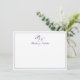 Cartões de agradecimentos de casamento clássico e clássico, com um simples design com seu monograma inicial e seus nomes em um elegante dentro de caligrafia roxa real de uma fronteira fina. A parte de trás é roxa sólida. Esta design clássica é perfeita para um casamento formal no outono/outono.