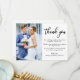Cartão de Agradecimento de Casamento Foto do Noivo e da Noiva com Caligrafia Moderna e Elegante