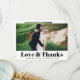 Placa Plana De Casamento Fotográfico De Obrigados E Amor Com Tipografia Negrito. Cartões de agradecimentos fotográfico moderno com o roteiro de tipografia ousado "amor e obrigados". Personalizado adicionando seus próprios detalhes. Outras cores estão disponíveis.