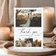 O cartões de agradecimentos moderno de casamento apresenta uma caligrafia fofa com 5 fotos. No verso, personalize sua mensagem de obrigado.