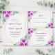 Estes cartões de agradecimento apresentam flores púrpuras de lírio, folhagem e estrutura geométrica moderna de ouro falso. Você pode adicionar a sua obrigado a sua mensagem, assim como seus nomes e data de casamento à dentro do cartão. Estes cartões de agradecimento fazem parte de uma coleção que inclui artigos de papelaria e presentes. Visite nossa loja para ver a gama de cheios de casamentos e produtos noivos que você pode personalizar para o seu casamento.