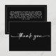 Cartão De Agradecimento Casamento Mínimo de Script Branco Preto Moderno