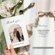 Cartões de agradecimentos de casamento de fotos com script mínimo com mensagem personalizada no verso.