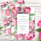 Elegante design floral com um moderno script de estilo manuscrito e peônias românticas de aquarela em fundo branco.O texto pode ser facilmente personalizado para um único design de tipo para seu dia especial.