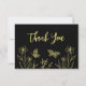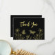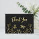 Cartão De Agradecimento Casamento preto de flor dourada simples