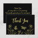 Cartões de agradecimentos de casamento simples e único com flores de ouro românticas e elegantes em fundo preto PARA MAIS PRODUTOS CORRESPONDENTES clique na coleção acima ou entre em contato comigo.