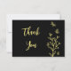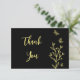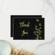 Cartão De Agradecimento Casamento preto de flor dourada simples