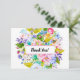 Linda e romântica cartões de agradecimentos de flores multicoloridas com sotaques cor-de-rosa macio e pastel em um belo fundo floral para você personalizar com seus detalhes do dia do casamento. Isto é parte de uma suíte de casamento, um terno inteiro para outros designs florais correspondentes. design de excelente de de Designs TLS.