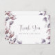 Cartões de agradecimentos de Casamento Roxo. Suave, sonhadora e romântica, este cartões de agradecimentos de casamento na moda apresenta uma linda faixa aquosa de folhas e flores pintadas manualmente em tons monocromáticos de roxo, ameixa e pintas moles com script e texto roxo correspondentes. A parte traseira da placa inclui o mesmo trabalho de arte e uma mensagem para personalização ou deixa vazio de exclusão. Encontre itens correspondentes na Coleção de Casamentos Botânicos Roxos Elegante.