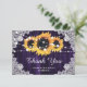 Cartão De Agradecimento Casamento Roxo De Madeira De Girassol Rústico