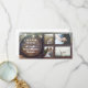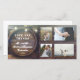 Cartão com fotos de casamento russo com barril de carvalho, hálito de bebê e luzes de cordas