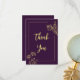 Cartões de agradecimentos de casamento simples e único com flores de ouro românticas e elegantes em fundo roxo PARA MAIS PRODUTOS CORRESPONDENTES clique na coleção acima ou entre em contato comigo.