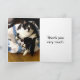 Uma fotografia do nosso gato-do-terno que gosta do seu presente de Natal, enquanto ainda está embrulhado. A frente do cartão diz, eu gosto do meu presente. Dentro diz, muito obrigado. Um jeito perfeito de dizer obrigado de você.