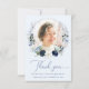 Cartão De Agradecimento Celebração da Vida do Memorial Floral Azul Elegant