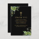 Um cartões de agradecimentos funerário cristão decorado com florais verdes, personalizado com o seu próprio obrigado. Projetado por Thisnotme©