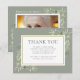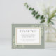 Um cartão de agradecimento de funeral elegante com folhagem botânica em aquarela. Você pode personalizar com a foto e mensagem de agradecimento escolhidas. Uma lembrança adorável para familiares e amigos trezourarem. Criado por Thisisnotme©