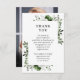 Um cartões de agradecimentos funerário decorado com um elegante design floral verde-oliva personalizado com o seu próprio obrigado, a sua mensagem e fotografia no verso. Projetado por Thisnotme©