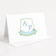 Este elegante design de casamento apresenta uma crista de casamento botânico verde-aquarela azul e branco feita inteiramente de elementos pintados manualmente por mim (você não encontrará este design em nenhum outro lugar). Observe que você pode alterar a cor de contraste do padrão de chave grega no reverso alterando a cor de fundo dessa camada.