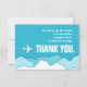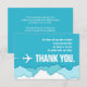 Um cartão de agradecimento vibrante em turquesa e branco personalizado para qualquer pessoa, seja amigos, familiares ou colegas que voaram para vir vê-lo, para fins de negócios, uma reunião de família, um casamento ou qualquer outro evento importante. O lado frente apresenta um poema curto e amigável, enquanto o lado oposto apresenta um espaço para sua mensagem única.
