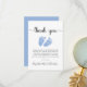 Cartões de agradecimentos bonito para os chás convidados do seu bebê com "obrigado!" num roteiro na moda com pinceladas e uma aquarela azul de pés de bebês. Por baixo, você pode personalizar facilmente seu obrigado, enviar uma mensagem ou deixar o vazio para uma nota manuscrita.