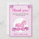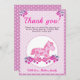Cartões de agradecimentos De Chá De Bebê-Rapariga De Cavalo Rosa Bonito. Um belo cavalo de balanço cor-de-rosa com folhagem num padrão de bolinhas. Personalize o cartão com seu nome e obrigado.