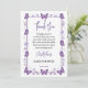 Cartão de agradecimento de chá de bebê de menina borboleta roxa. Maneira fofa e elegante de agradecer aos convidados pelos presentes e apoio.