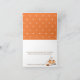 Tempero de abóbora e tudo de bom tornam um chá de noiva com tema outonal, chá de casal ou cartão de agradecimento de casamento fofo. O copo fumegante de café com leite de especiarias de abóbora pode ser personalizado com as iniciais e monograma da noiva e do noivo. Uma pluma de vapor em forma de coração flutua acima do creme chantilly e do copo de café carregado de pau de canela. Um delicioso cupcake de especiarias de abóbora com confeitos e uma rosa em tons de outono completa este convite de chá de casamento sazonal. O interior do cartão de agradecimento tem um padrão de coração com bolinhas laranja e branco. Arte © Chrissy H. Studios, LLC. Todos os direitos reservados.