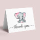 Cartões de agradecimentos dobrado bonito para o chá de sua menina com "obrigado você" em um roteiro de cinza mole com pinceladas e uma aquarela rosa de elefante bebê. Dentro, personalize o seu obrigado com uma simples topografia de cinza ou deixe vazio para uma nota manuscrita.