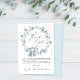 Cartões de agradecimentos de chá de bebê bonito com "Obrigado" em um roteiro de na moda com um inchaço cardíaco e uma aquarela de um elefante de bebê azul pastel em uma coroa de verde eucalipto. Personalize seu obrigado e adicione seu(s) nome(s) em um script de assinatura ou deixe o vazio para uma nota manuscrita.