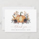 Este design apresenta uma elegante abóbora aquarela cercada por flores e folhagens escuras de outono. Perfeito para chá de bebê de outono.