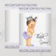 Cartão de agradecimento de chá de bebê lilás e cinza com adorável princesa bebê vintage usando calças e chinelos lilás com uma coroa prateada e laço lilás no cabelo sobre um elegante fundo de renda lilás e cinza. Este cartão de agradecimento de chá de bebê lilás e cinza é facilmente personalizado adicionando sua mensagem ou deixe em branco para adicionar sua mensagem manuscrita quando eles chegarem.