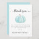 Obrigado seu filho chá convidados com esse cartões de agradecimentos bonito com "obrigado você" em um roteiro de cinza com pestanas e uma aquarela azul de abóbora. Por baixo, você pode personalizar facilmente seu obrigado, enviar uma mensagem ou deixar o vazio para uma nota manuscrita e adicionar uma assinatura.