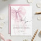 O elegante cartão de agradecimento Pink Watercolor Bow irradia um charme sofisticado e romântico, estabelecendo um tom polido e sincero para a sua gratidão pós-celebração. Com um laço de água colorida deslumbrante e superdimensionado em um delicado tom rosa poeirado, este design captura lindamente a essência da graça feminina moderna. As camadas suaves e translúcidas do laço adicionam um sentido de movimento etéreo e luxo personalizado à sua papelaria personalizada.
