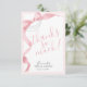Este cartão de agradecimento duplo moderno e sofisticado para chá de noiva no estilo Coquette apresenta um laço de fita cor-de-rosa em aquarela suave com uma corrente de pérolas, letras em script rosa na frente, e um padrão de laços e pérolas com área transparente no verso para a mensagem pessoal da noiva - é o toque feminino perfeito para o dia especial da noiva antes do grande dia! Personalize facilmente o texto do cartão de agradecimento e faça-o seu. Role para cima para ver toda a coleção de convites, papelaria e decoração correspondente! ♥ Solicitações de design personalizado e perguntas são sempre bem-vindas - clique no botão "mensagem" ou envie um e-mail para: contact@figandlilyco.com. O design é criado com carinho pelos Fig and Lily Studios, enviando bênçãos e agradecimentos!